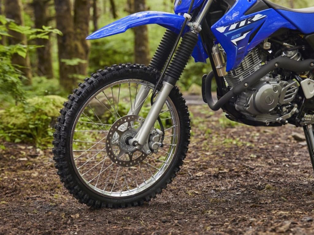 The TT-R125LE features push-button electric start, 19-inch front and 16-inch rear wheels for great handling, aluminum swingarm, adjustable suspension calibrated for aggressive and/or bigger riders, and a 220mm front disc brake for sure stopping power.