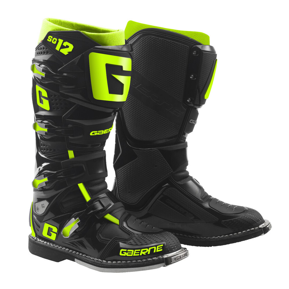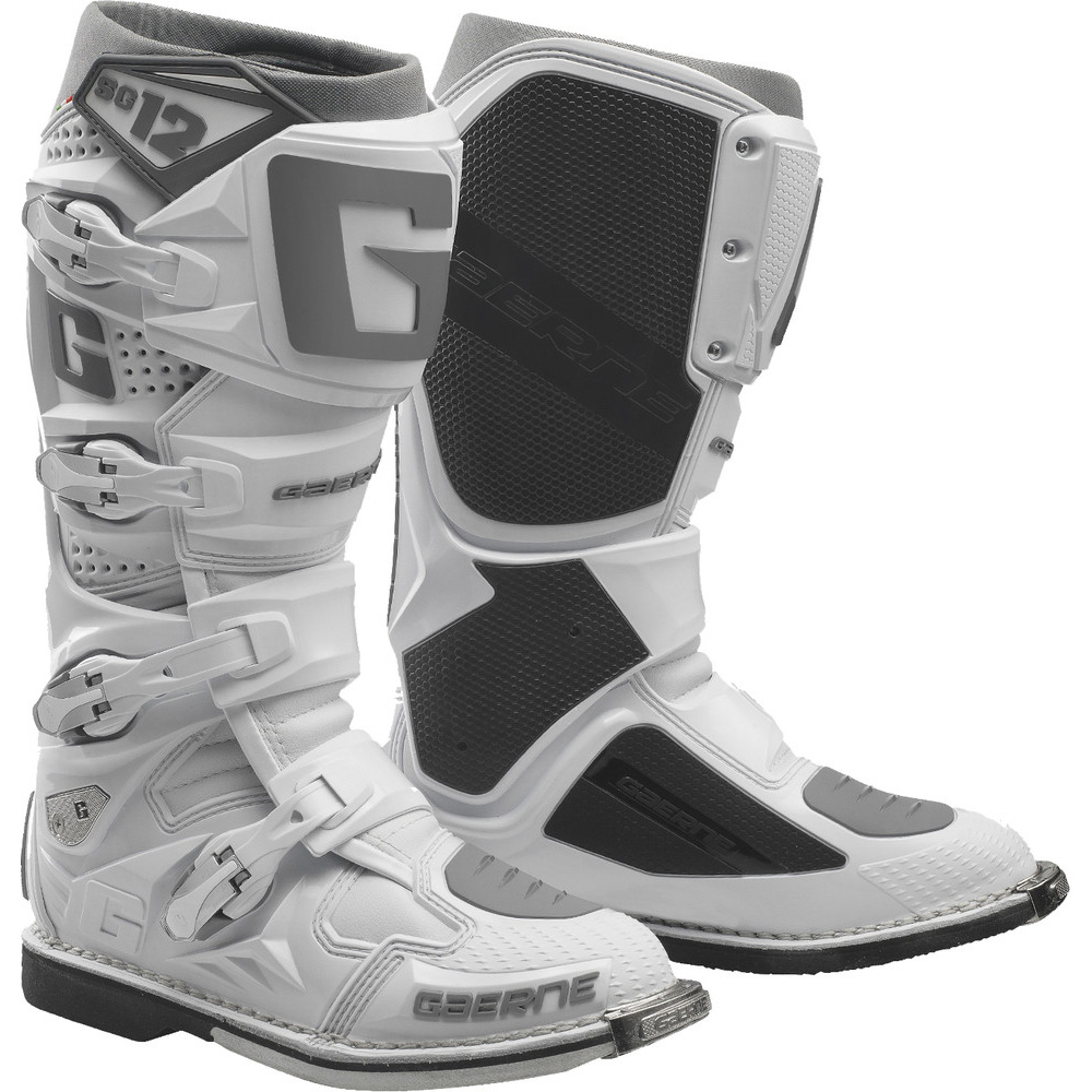 Choices create champions, but support is what keeps them at the top, which is why the SG-12 boot is the choice for riders who aspire to rise above the competition. From box to bike with minimal break-in, Gaerne’s SG-12 boots are made in Italy by practiced hands that step-by-step layer support, security, and comfort into each boot. The premium SG-12 offers a streamlined toe box for precision control, a dual-stage pivot system for more aggressive riders, an anti-shock composite sole for better connection to the pegs, slimline inner grip guard panels for better control and grip of the bike, memory foam interior for a customized fit, and an adjustable shin plate for more room around the calves. Our buckle system makes it easy to get in and get going, so a rider can focus less on gear and more on the ride.